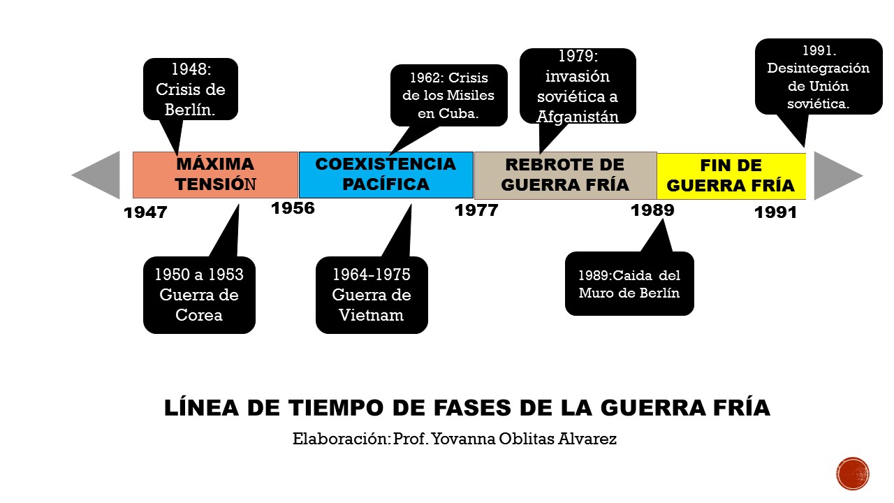 La Guerra Fría fue el sistema de relaciones internacionales imperante desde 1945 a 1991 entre las dos superpotencias, Estados Unidos y la URSS, en constante tensión y la división del mundo en dos bloques: el capitalista y el comunista.